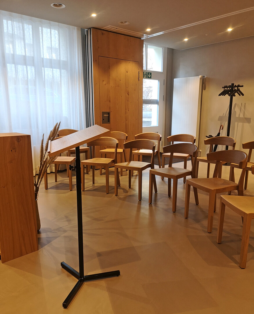 Der Raum kann beliebig bestuhlt, mit kleinen Tischen bestückt oder in Kombination mit unserem Aufbahrungsraum genutzt werden.