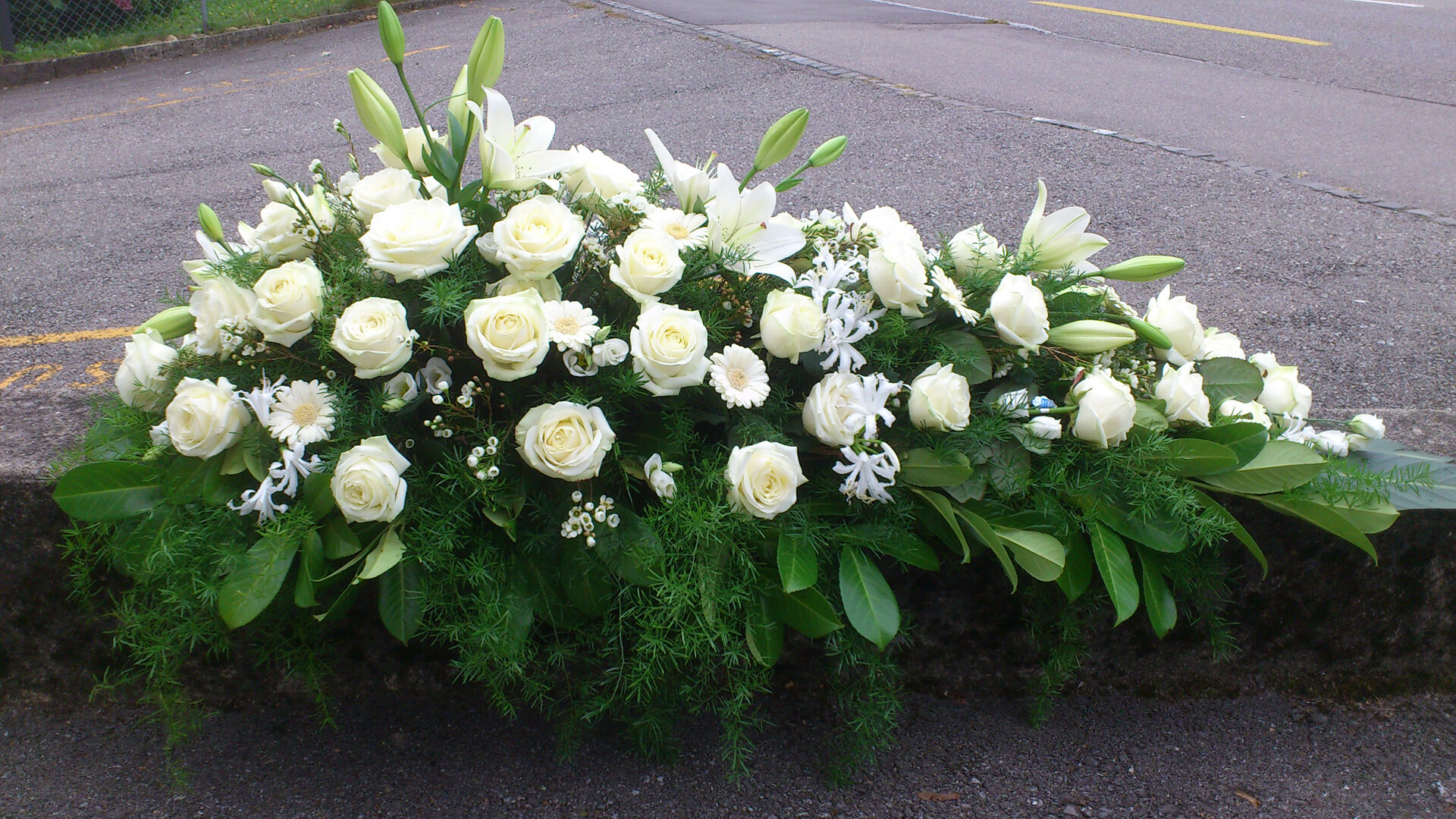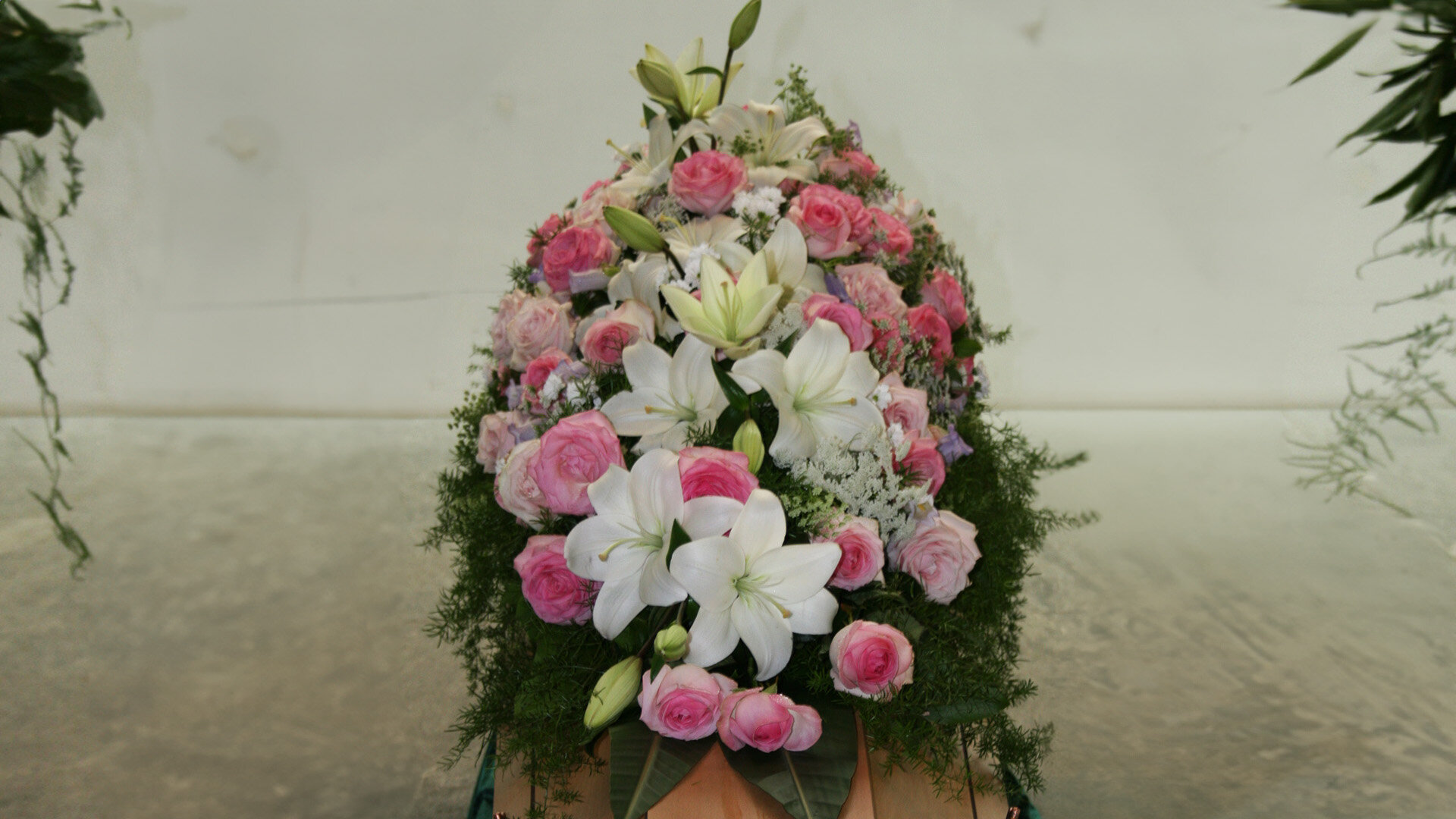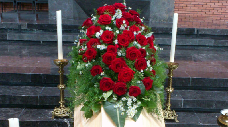 Sargbouquet SB 08 Rosen und Lilien ausgeschmückt