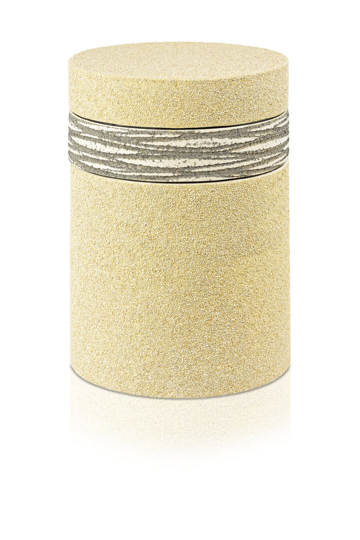Ökourne Steinoptik, beige sandbeschichtet, Fussspuren H: 26 cm, Ø 18 cm